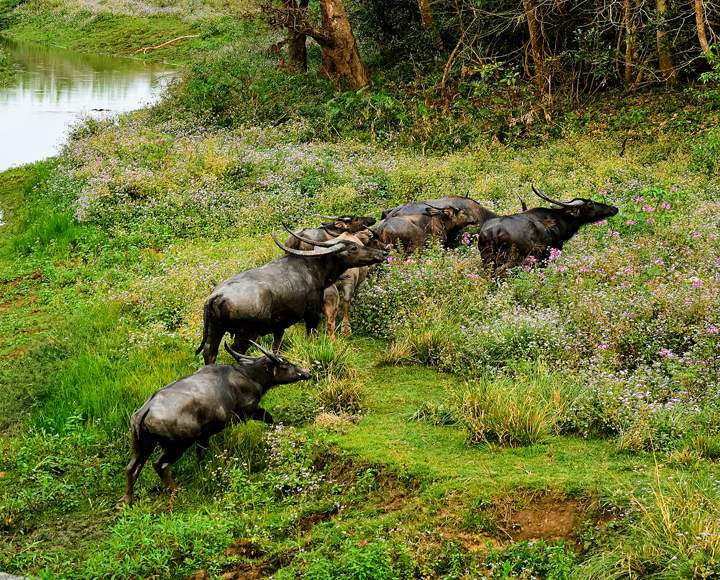 Kaziranga National Park – situated in the flood plains of Bramhaputra in Assam is often compared with African wildlife sanctuaries due to the quality of wildlife viewing here. Associated more commonly for conservation of endangered Great Indian one Horned Rhinoceros and harbouring largest population of them, this World Heritage Site boasts of one of the highest Tiger density apart from harbouring world’s largest population of Asian Wild Buffalo and last surviving population of Eastern Swamp Deer.