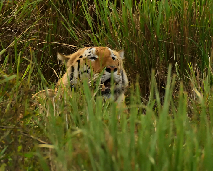 Apart its main predator Tiger one can expect to see leopard and lesser cats like Jungle and Fishing Cat etc. Main prey base here are deer species like Spotted Deer, Sambar, Hog Deer, Sambar, Swamp Deer, Hog Deer, Barking Dee and Indian Muntjac etc. Other mammals seen here are Asian Elephant, Sloth Bear, Wild Boar, Gaur, Asian Wild Buffalo, Common Indian Otter, Indian Porcupine, Eastern Mole, Large and Small Indian Civet, Pangolin Small Indian and Indian Gray Mongoose, Bengal and Golden Fox, Hog Badger, Orange-bellied Himalayan Squirrel, Malayan Giant Squirrel, Bristly Hare etc. Primates seen here are Rhesus Macaque, Assamese Macaque, Capped Langur, Hoolock Gibbon, Slow Loris etc. Reptiles found in the park are Water Monitor, Indian Python, Common Cobra and famous King Cobra.