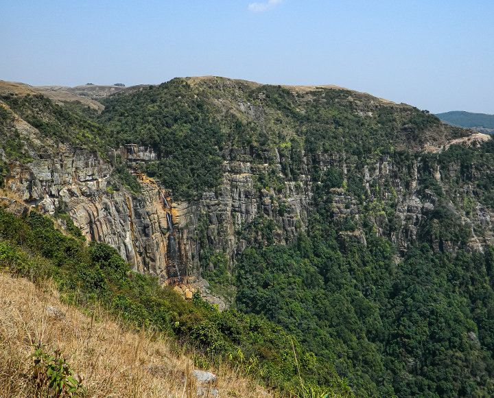Thangkharang Park - cliff-edge park giving wide 180-degree views over the canyons and plains of Bangladesh, plus distant sight of the tiered Kynrem Falls.