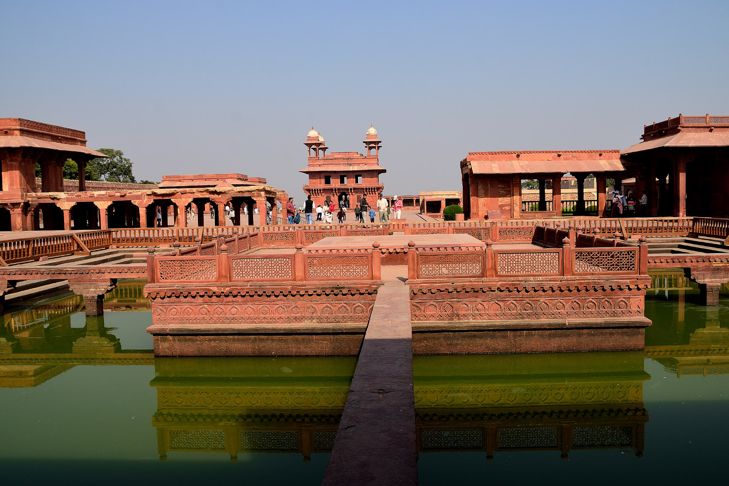 Fatehpur Sikri briefly served as the capital of Mughal Empire during the reign of Emperor Akbar. It is believed, that the city was quickly abandoned due to lack of potable water. The palaces, meeting halls, and courtyards all built in red sandstone inside the complex are in a remarkable state of preservation.