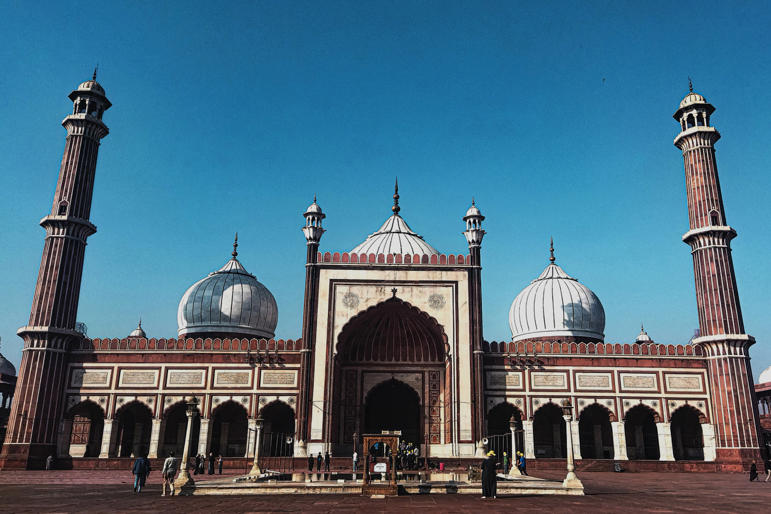 Jama Masjid - the last architectural extravagance of the emperor Shah Jahan, which he built shortly after the completion of Red Fort. The largest mosque in India, its courtyard and surroundings can accommodate 25000 devotees to offer prayer at a time.